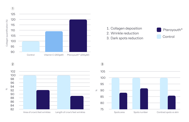 Powered by an advanced formulation of second-generation polyphenols for cellular health, Pteroyouth® provides multi-layered skin support: